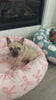 Made from pet-safe polyester with no harsh coatings or fiberglass. Wash before first use if your pet is very sensitive; a second rinse cycle can help remove residual detergents.